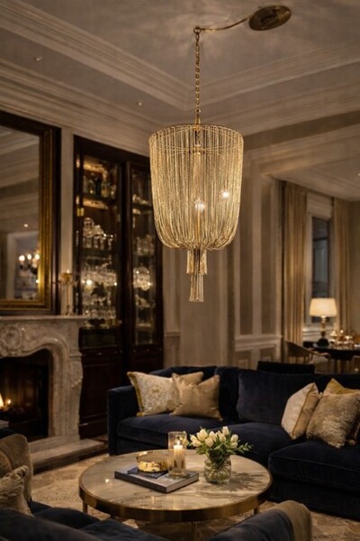 Deze stijlvolle lamp zorgt voor een luxe uitstraling in een grote ruimte. Verkrijgbaar in verschillende maten (zie foto's) en in de kleur: Zwart en Goud